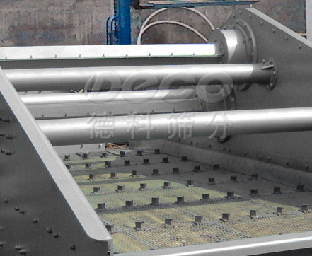 德科生產(chǎn)的高頻脫水振動(dòng)篩采用了雙電極自同步技術(shù),通用型塊偏心、可調(diào)振幅振動(dòng)器。通過(guò)膠帶聯(lián)軸分別驅(qū)動(dòng)兩個(gè)互不聯(lián)系的振動(dòng)器作同步反向運(yùn)轉(zhuǎn),兩組偏心質(zhì)量產(chǎn)生的離心力沿振動(dòng)方向的分力疊加,反向離心抵消,從而形成單一的沿振動(dòng)方向的激振動(dòng),使篩箱做作往復(fù)直線運(yùn)動(dòng)。