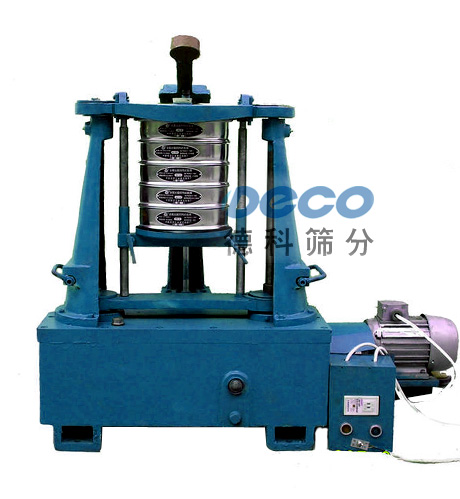 二、德科拍擊篩的主要結構 拍擊式標準振篩機(拍擊篩)主要由機座、篩與傳動機構等部分組成。 本拍擊篩可配備專用夾具、即可裝夾Φ200試驗篩,又可裝Φ75、Φ100套篩,裝夾方便靈活,夾緊牢靠,并能自動停機。