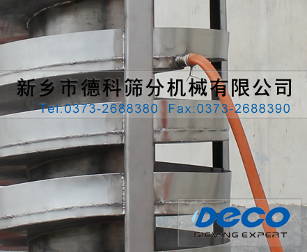 三、水冷式振動螺旋提升機 結(jié)構(gòu) 水冷式振動螺旋提升機就是在我公司吸收國外先進技術(shù)生產(chǎn)的新型蜂窩式底座的KCCZ型振動螺旋提升機的基礎(chǔ)上,在螺旋輸送槽底部接觸面增加了水冷槽,進行冷水循環(huán),從而達到幫助經(jīng)過輸送槽的高溫物料進行降溫輸送的效果。 四、德科水冷振動提升機的使用范圍 德科生產(chǎn)的振動螺旋垂直提升機是用來垂直輸送粉狀、粒狀、小塊狀物料的一般用途的輸送設(shè)備,提高工作效率,應(yīng)用范圍很廣。適用于各行業(yè),如建材、化工、電力、冶金、煤炭、焊劑、糧食等行業(yè)。水冷式振動螺旋提升機適用于高溫物料需要在輸送過程中進行一定的冷卻降溫作用。如:燒結(jié)焊劑等。